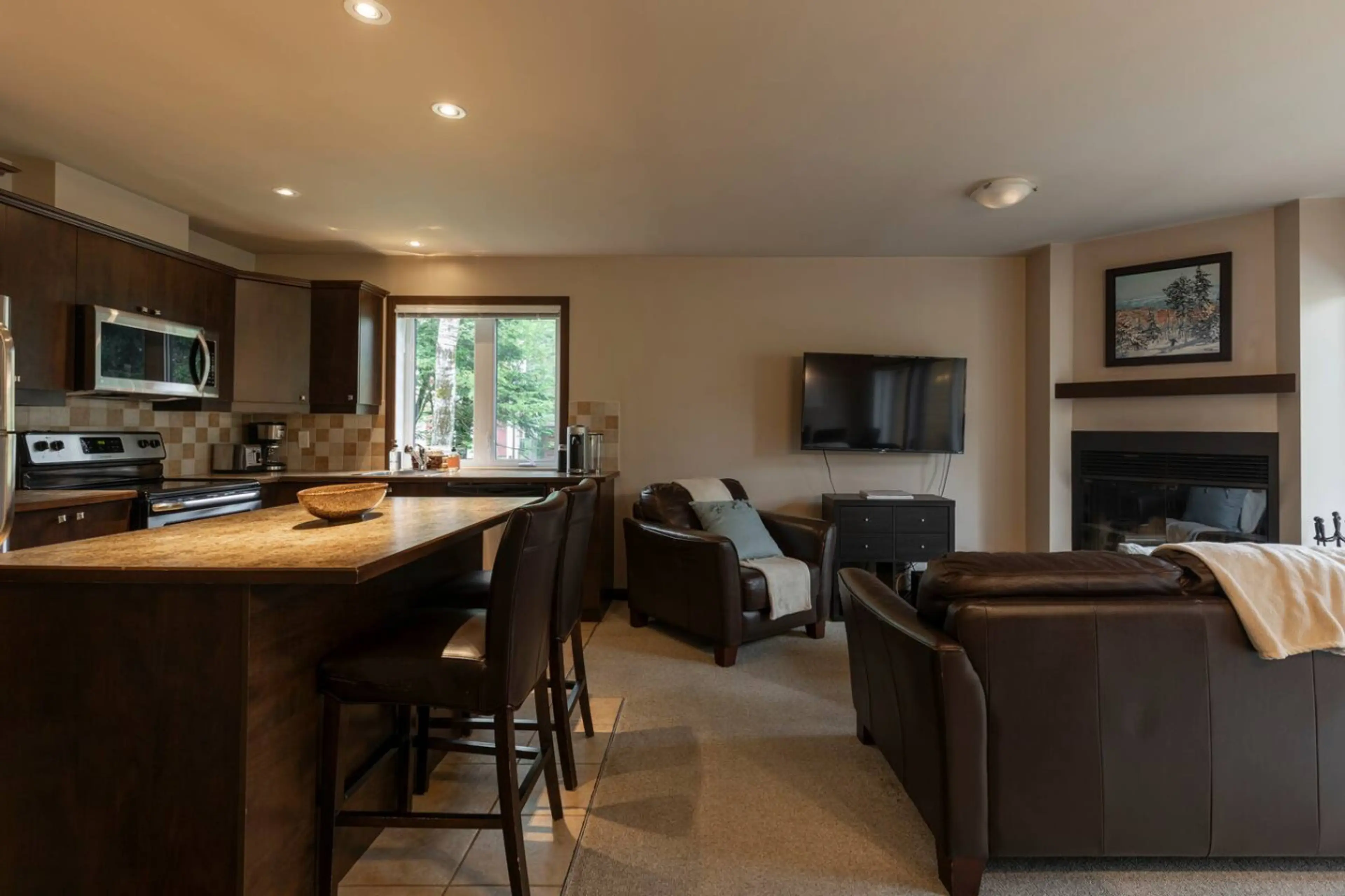 Entrada y salida de ESQUÍ Tremblant • Vue Lac + Montagne • Foyer